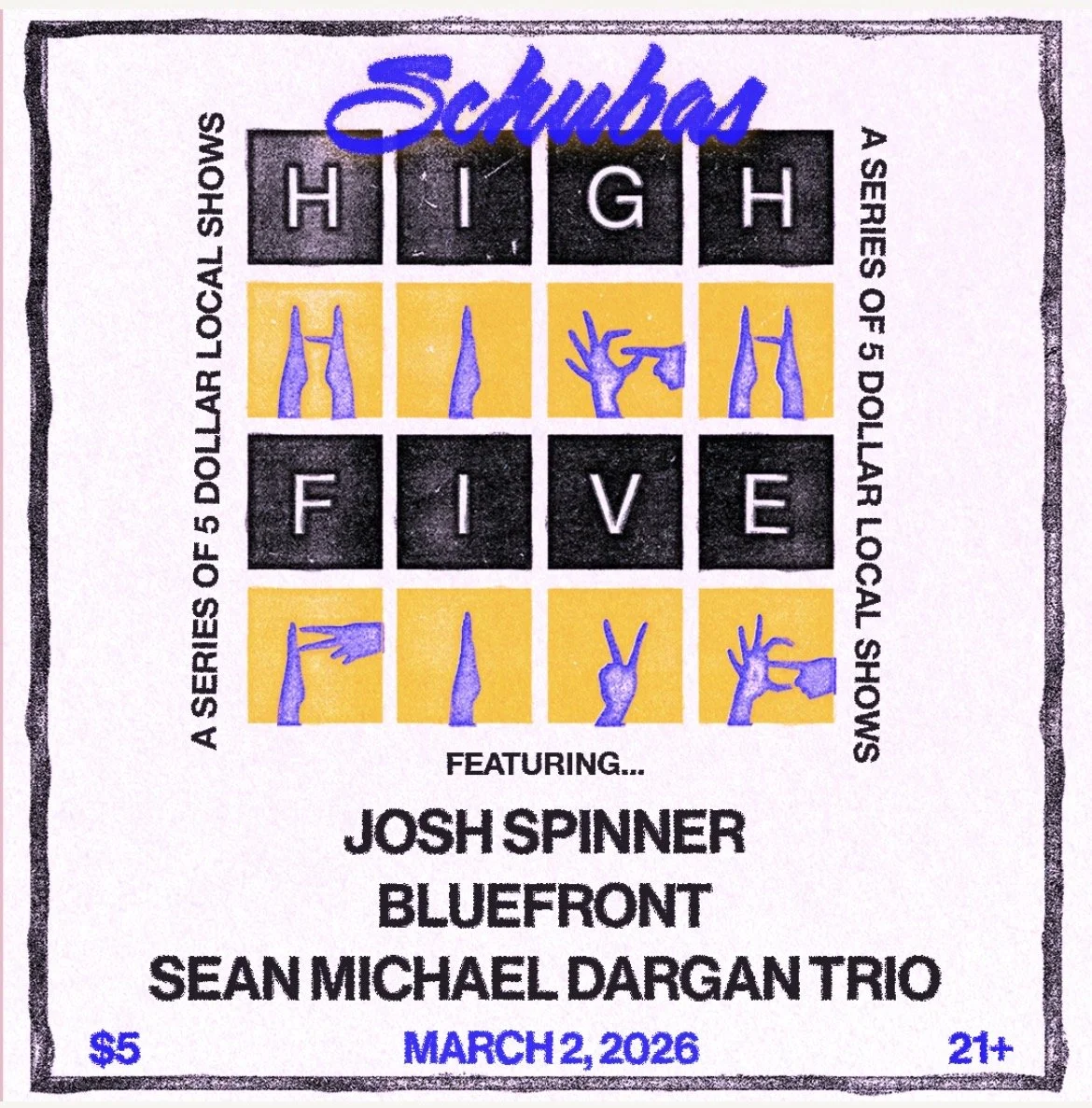 Monday 2 March ‘26 — Schubas Tavern — Chicago, IL (Trio playing Schubas High Five)
